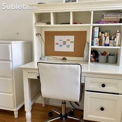 Fully furnished and features high ceilings, a private patio, laundry machines, dishwasher, and TV. Great for exchange students!