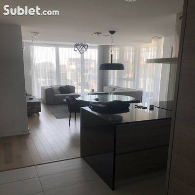 beautiful View of downtown . Fully equipped with washer dryer in unit . Dishwasher , fridge freezer . 1 minute from St-Catherine . Sunshine in unit all day. Quiet corner unit . Friendly neighbors. Everything is furnished except the extra room which needs a bed etc. 1 parking spot included + storage. Clean building always well maintained. Double gym + rooftop pool and much more